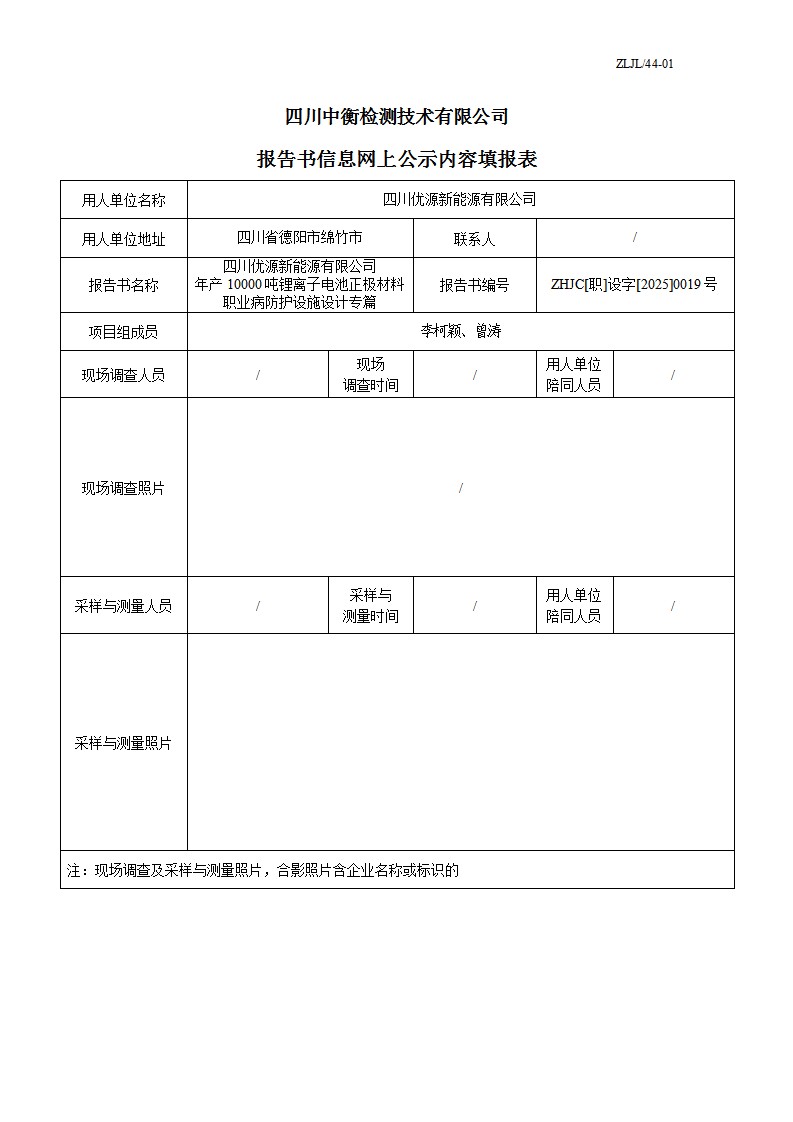 四川优源新能源有限公司 年产10000吨锂离子电池正极材料 职业病防护设施设计专篇